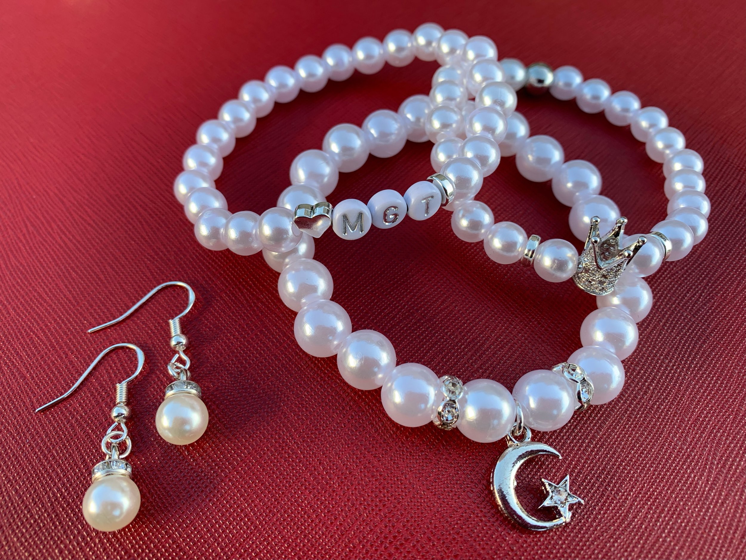 3 Stack MGT Pearl Bracelets & Earring Set Silver or Gold Adult $20.00