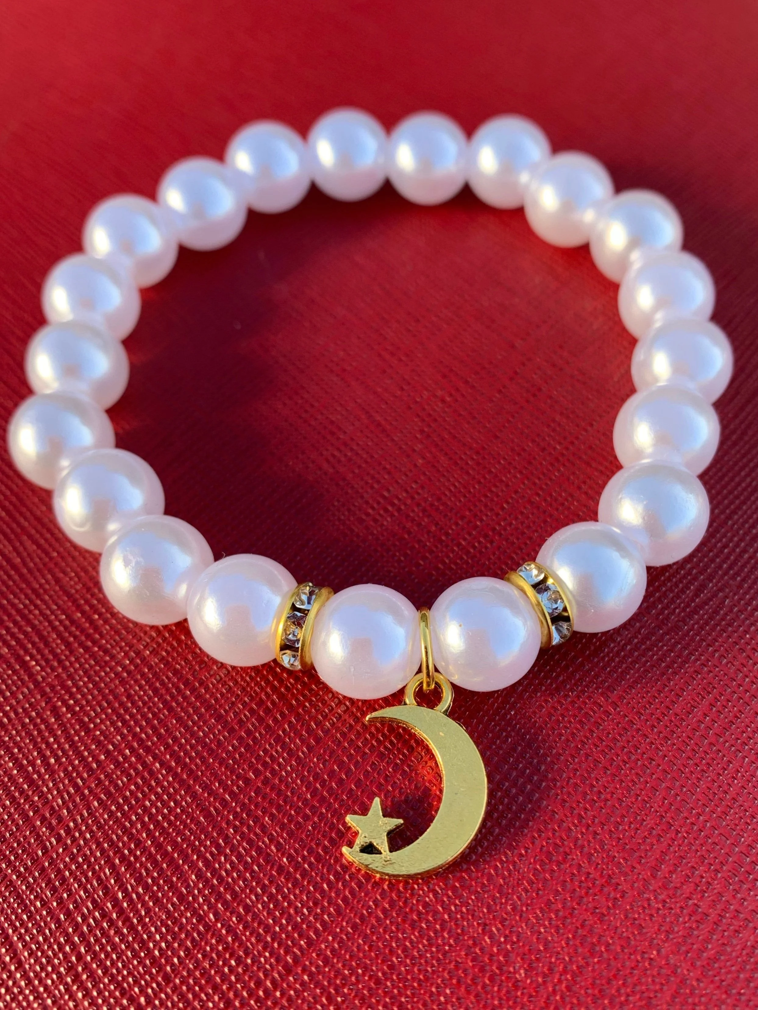 Single Moon & Star Pearl Bracelet Gold $8.00